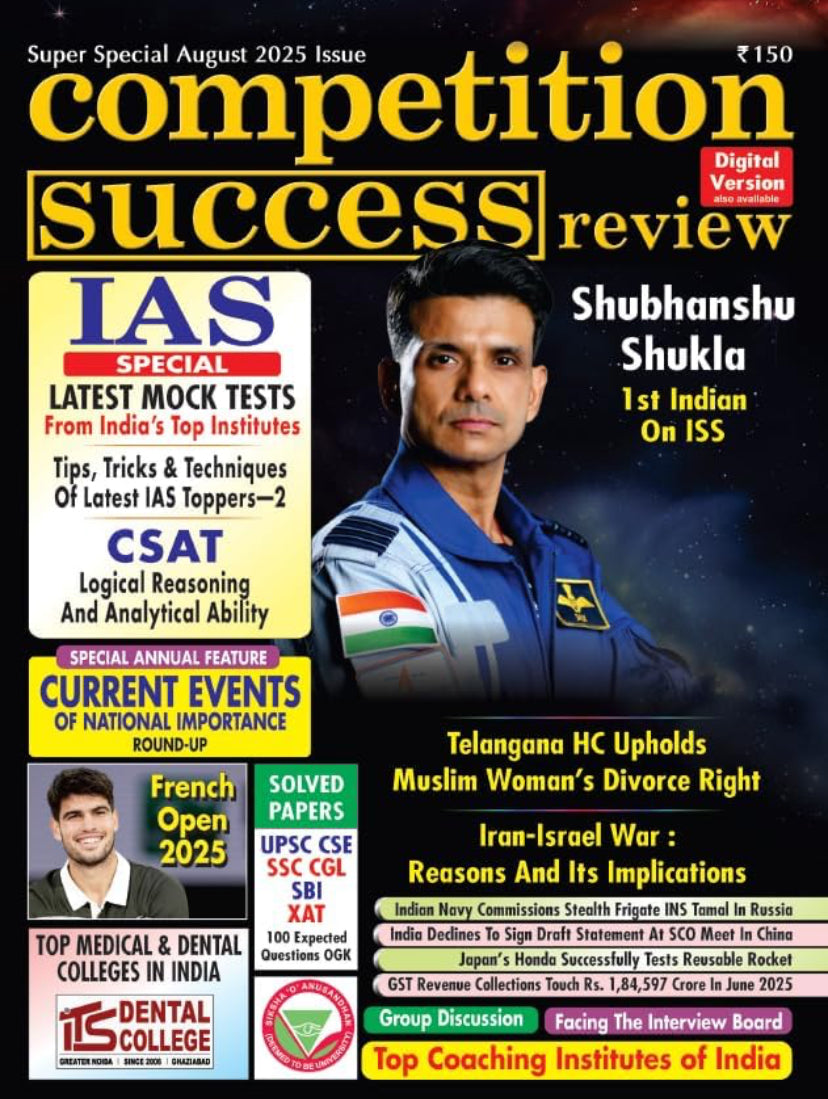 The Competition Success Review August 2025 Issue in English Medium offers comprehensive insights and updates critical for competitive exam aspirants. It delivers expertly curated content including current affairs, detailed analyses, and practice questions, designed to enhance preparation effectiveness and keep readers well-informed of key developments. This issue serves as an essential resource for those aiming to excel in competitive exams with up-to-date, reliable information presented with clarity and precision.